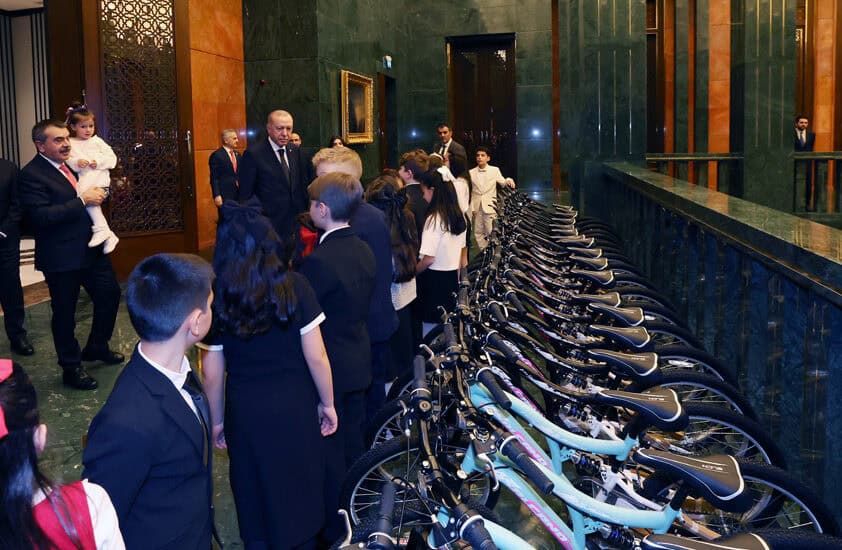 Program sonunda Cumhurbaşkanı Erdoğan, çocuklara bisiklet hediye etti. Ziyaret, karşılıklı iyi dileklerin iletilmesiyle sona erdi.