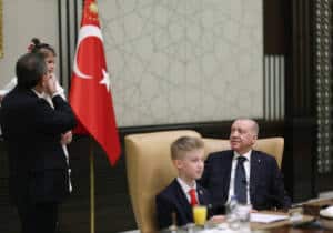 Cumhurbaşkanı Recep Tayyip Erdoğan, 23 Nisan Ulusal Egemenlik ve Çocuk Bayramı kapsamında Millî Eğitim Bakanı Yusuf Tekin ve beraberindeki öğrencileri Cumhurbaşkanlığı Külliyesinde ağırladı.