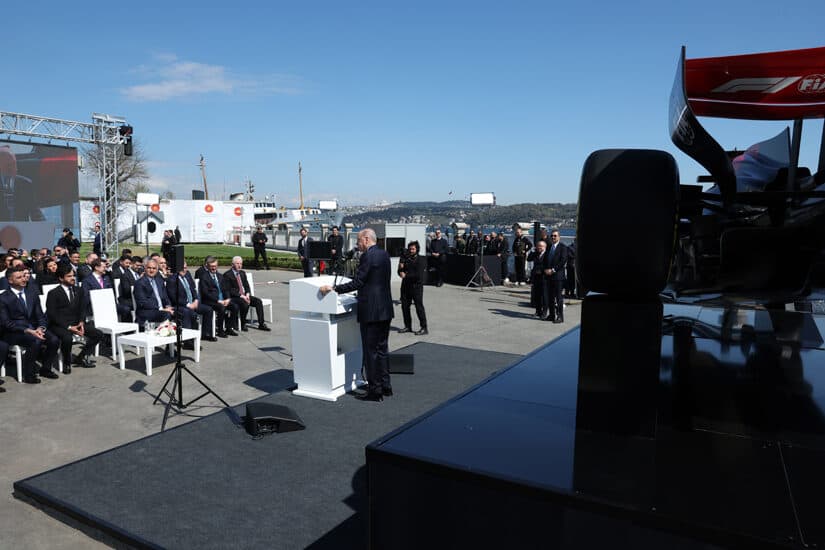 Konuşmanın ardından, 2027’de gerçekleşecek F1 Türkiye GP için sembolik start verildi. Red Bull takımından Yuki Tsunoda’nın kullandığı test aracı, Galataport’tan hareket ederek Karaköy güzergahı üzerinden Dolmabahçe’ye ulaştı. Etkinlik sonunda, Türkiye Otomobil Sporları Federasyonu Başkanı Eren Üçlertoprağı, Cumhurbaşkanı Erdoğan’a Formula 1 direksiyonu hediye etti.
