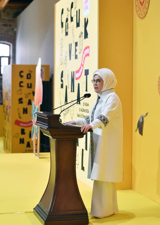 Emine Erdoğan, Aile ve Sosyal Hizmetler Bakanlığı himayesinde, Kültür ve Turizm Bakanlığı ev sahipliğinde Rami Kütüphanesi‘nde düzenlenen Rami Çocuk ve Sanat Bienali‘nin açılış törenine katıldı.